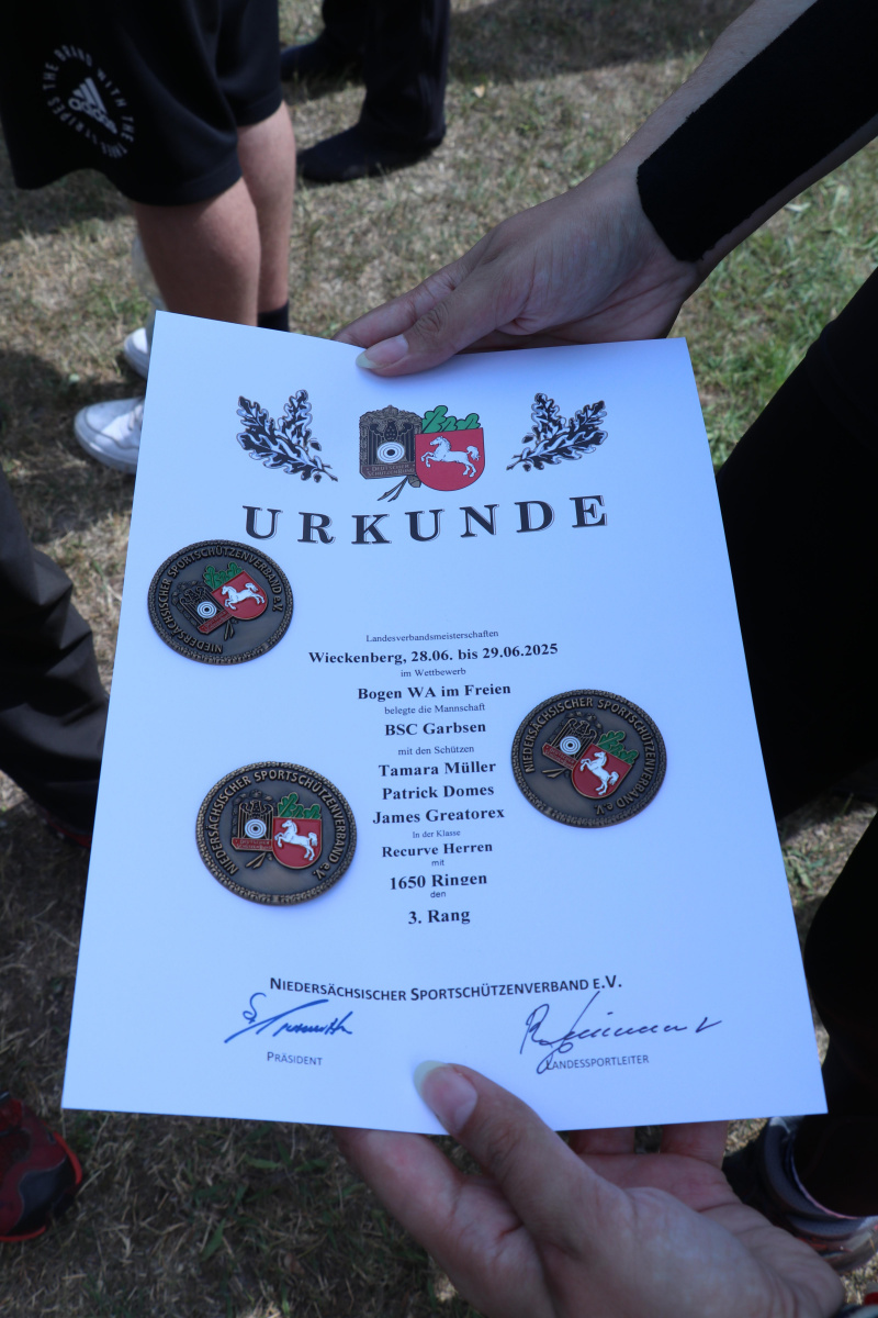 Während die meisten aus dem Verein sich morgens zum Aufbau für das Fest der Vereine getroffen haben, fuhren am 29.6.2025 drei unserer Schützen zu den Landesmeisterschaften im Freien des NSSV nach Wieckenberg.