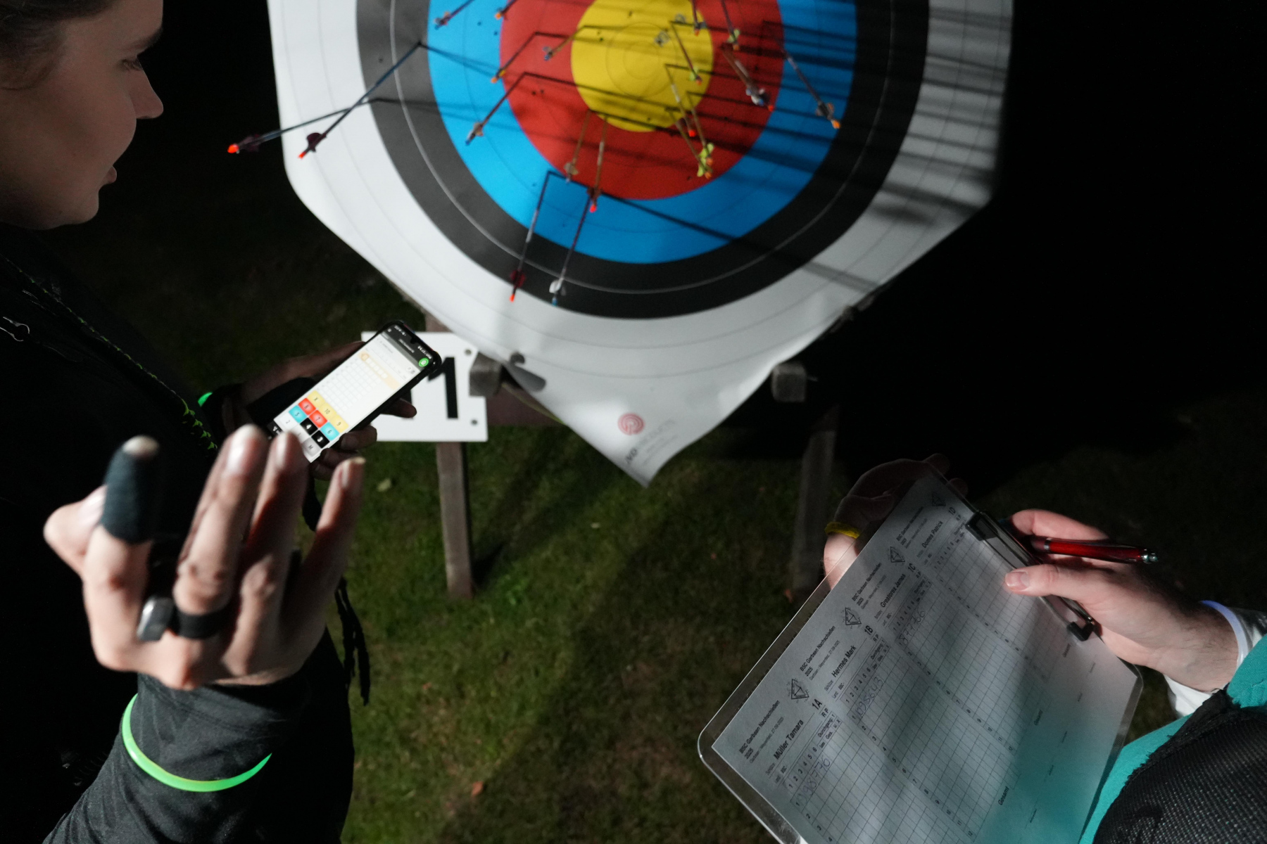 Nach Ende des Schießens wurde während der Auswertung schon einmal die Elektrik wieder zusammengepackt. Die Auswertung selbst ging dank der erneut eingesetzten Software von Ianseo sehr schnell. In dieser wird parallel zum Papierzettel jeder Treffer in einer App erfasst und auf einem Server alles zusammengerechnet. So kann man sich schon fast wie auf einer DM fühlen.